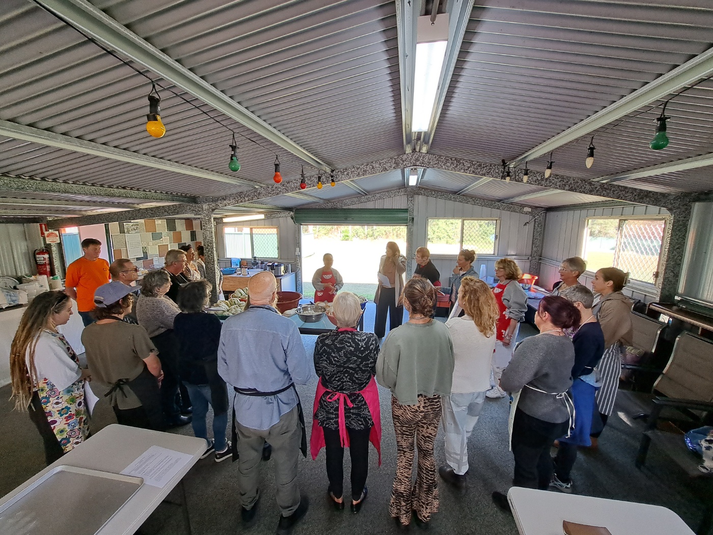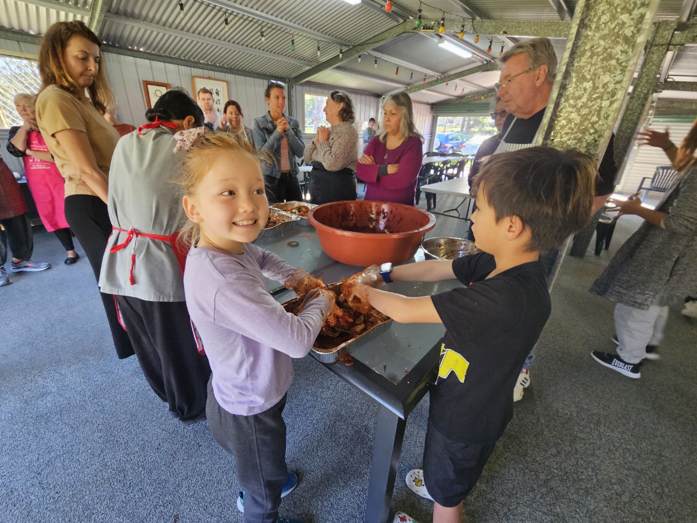Then, everybody took a few cabbages and practiced coating.
