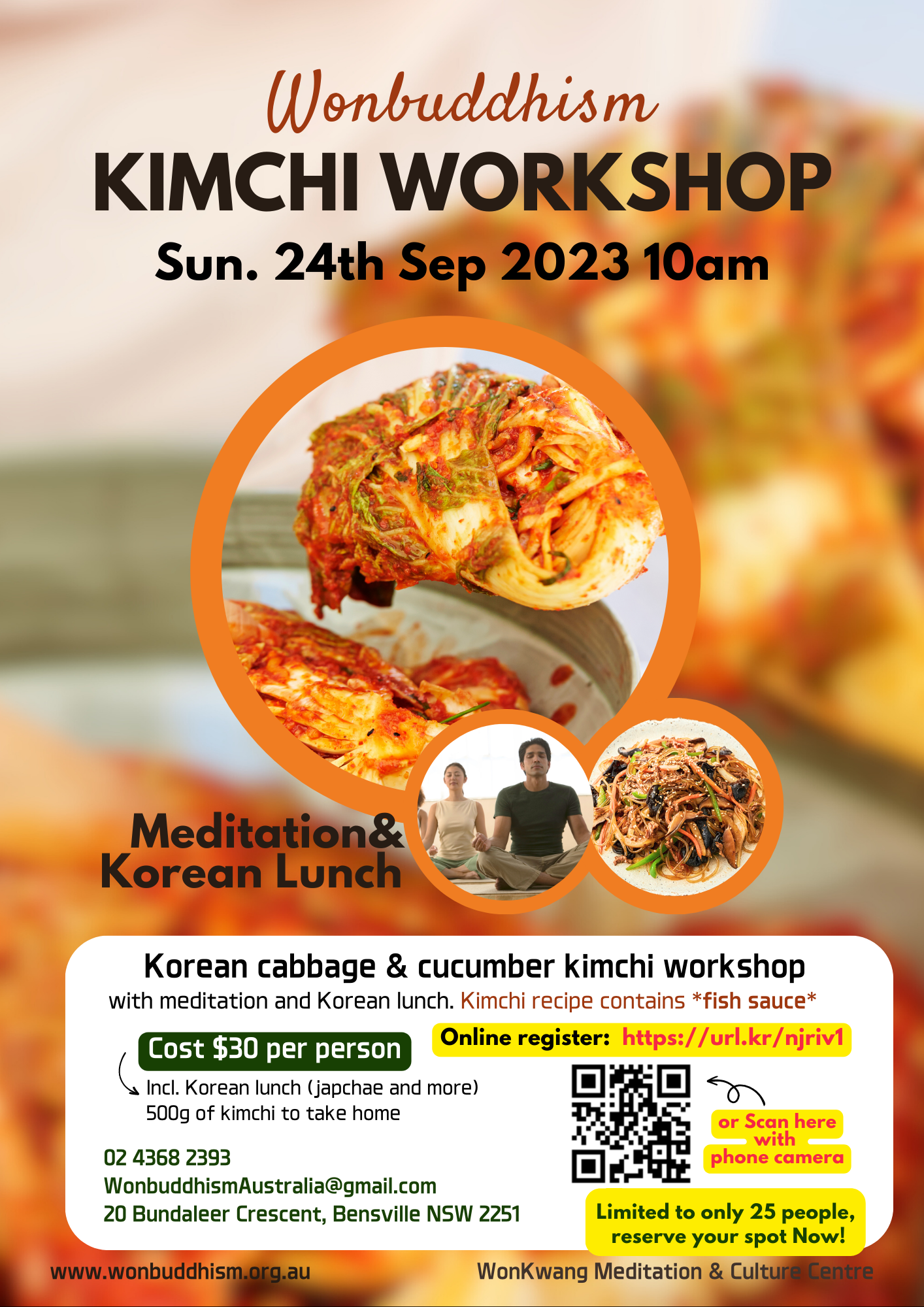 Join our September Event!! 🥬"Kimchi Workshop"🥬 As many of you tasted and loved our hand-made kimchi, and showed interest in making it yourself, We planned a Kimchi workshop as our upcoming Event! We are so happy to share all our kimchi-making tips with you all! The workshop is on the 24th of September, Sunday, 10 am. We will 1) Make Cabbage Kimchi as well as Cucumber Kimchi, 2) Meditate for a li..