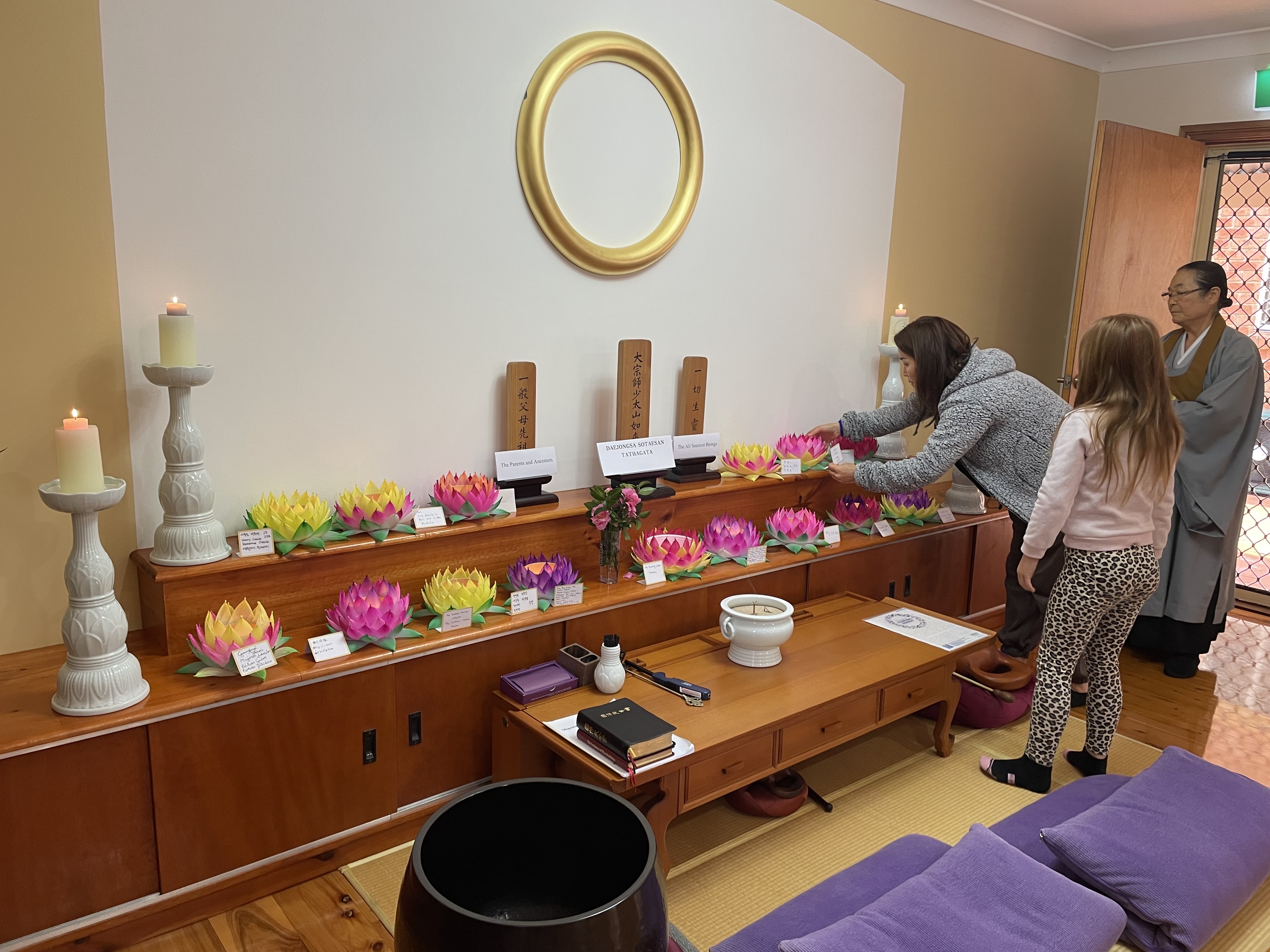 So we began our service by lighting our lotus lantern with our deceased family and ancestors' names.